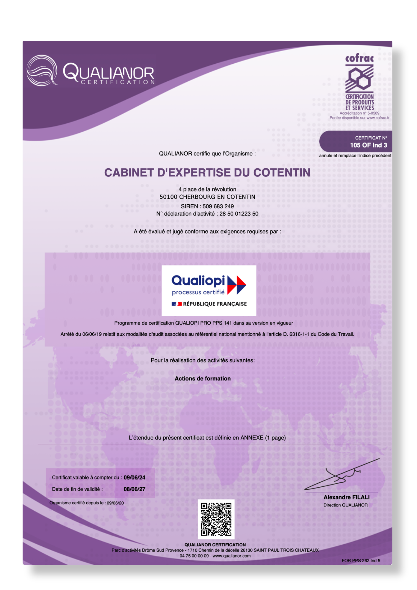 Issue de la loi « Avenir professionnel » de 2018, la certification QUALIOPI constitue une reconnaissance officielle de la qualité des actions de formation proposées par notre cabinet.
